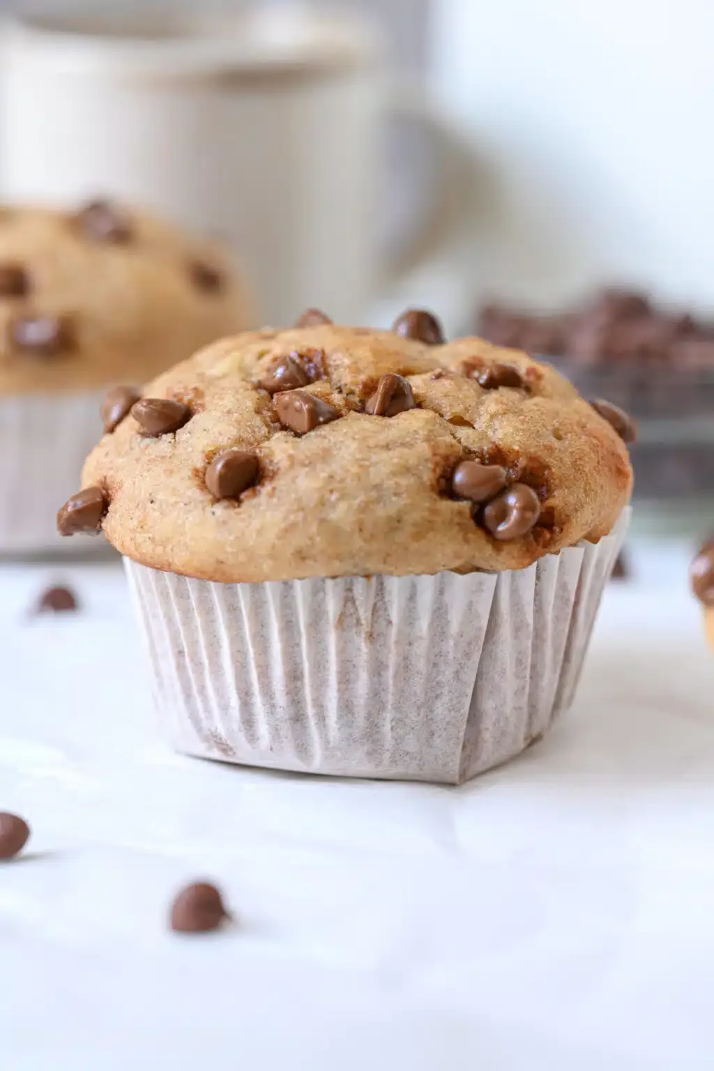 Fill each muffin liner about ⅔ full. Sprinkle extra chocolate chips on top if desired. Bake for 20–25 minutes until a toothpick inserted in the center comes out clean.